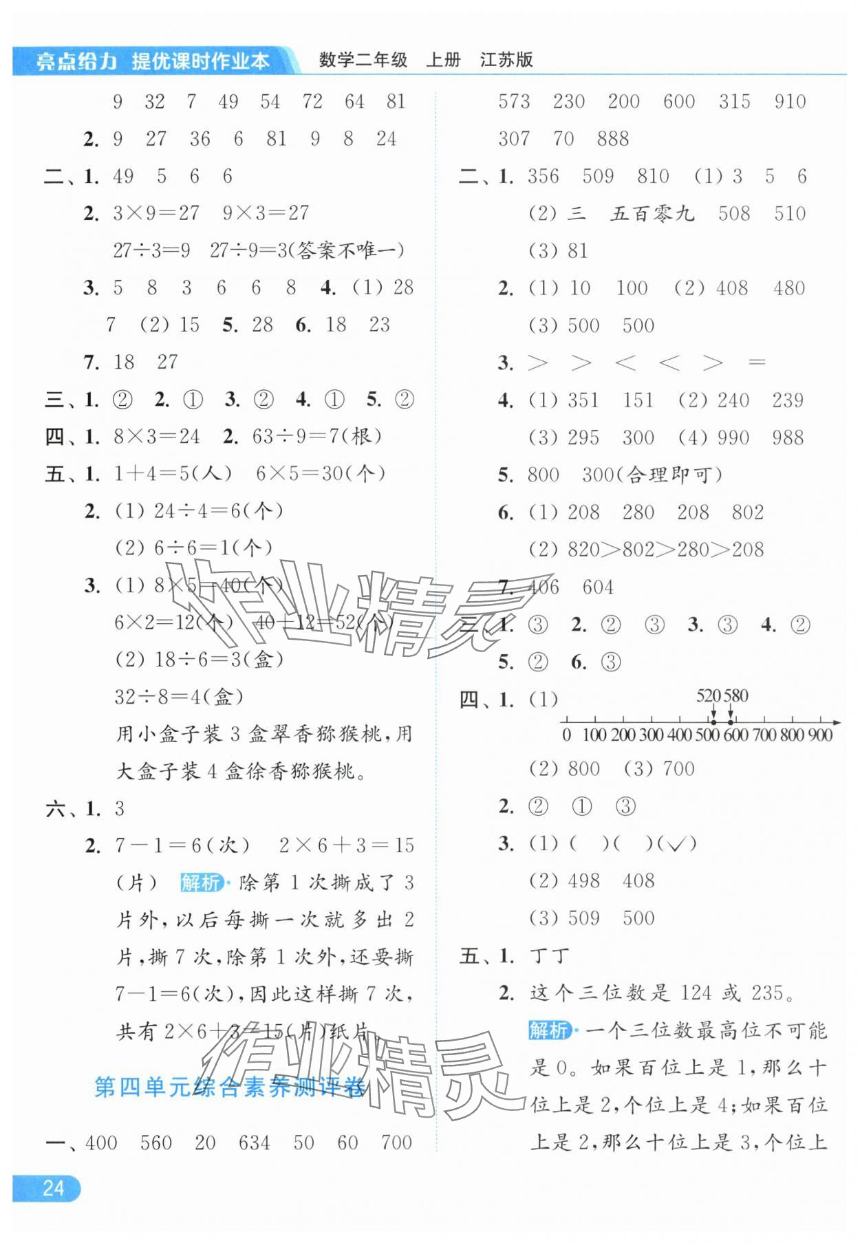 零五網(wǎng) 全部參考答案 亮點(diǎn)給力提優(yōu)課時作業(yè)本答案 2025年亮點(diǎn)給力提優(yōu)課時作業(yè)本二年級數(shù)學(xué)上冊江蘇版參考答案第24頁