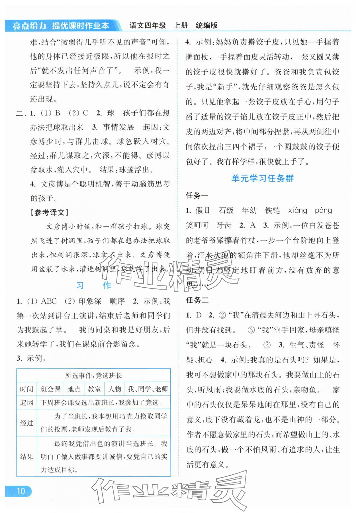 零五網(wǎng) 全部參考答案 亮點(diǎn)給力提優(yōu)課時(shí)作業(yè)本答案 2025年亮點(diǎn)給力提優(yōu)課時(shí)作業(yè)本四年級(jí)語(yǔ)文上冊(cè)統(tǒng)編版參考答案第10頁(yè)