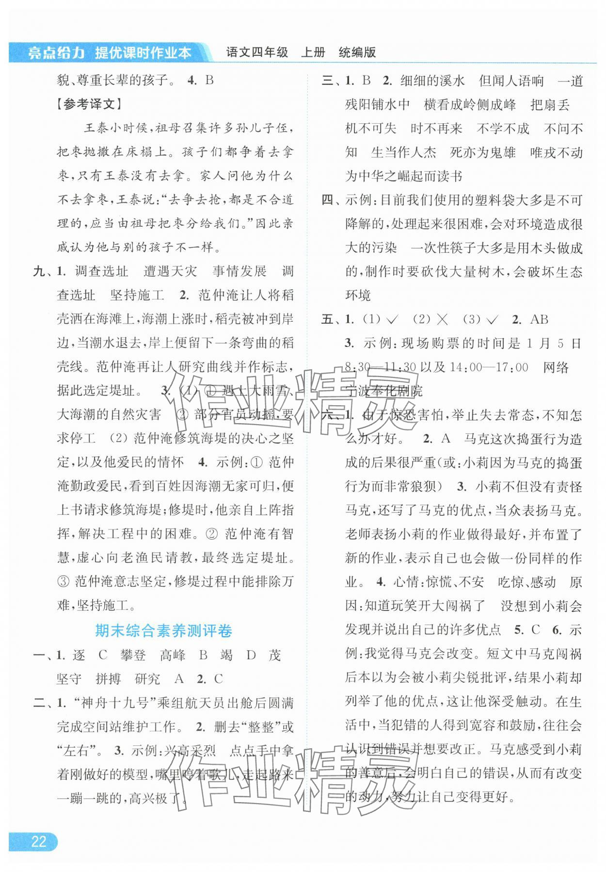 零五網(wǎng) 全部參考答案 亮點給力提優(yōu)課時作業(yè)本答案 2025年亮點給力提優(yōu)課時作業(yè)本四年級語文上冊統(tǒng)編版參考答案第22頁