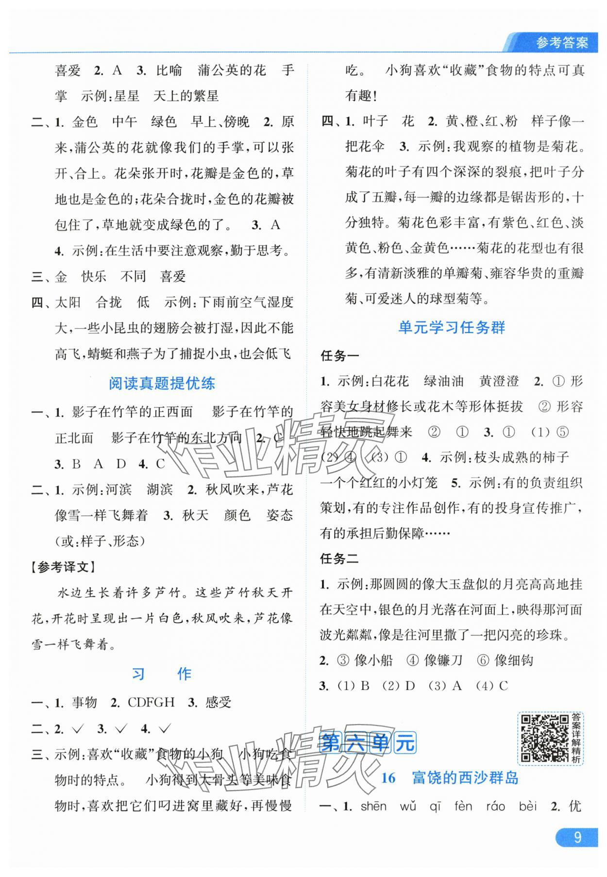 零五網(wǎng) 全部參考答案 亮點給力提優(yōu)課時作業(yè)本答案 2025年亮點給力提優(yōu)課時作業(yè)本三年級語文上冊統(tǒng)編版參考答案第9頁