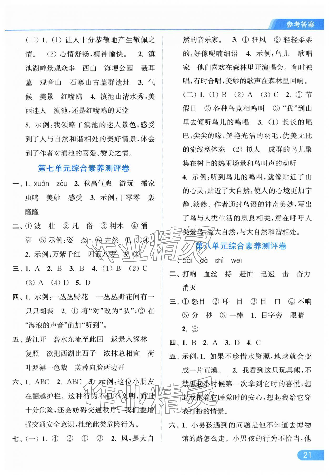零五網(wǎng) 全部參考答案 亮點給力提優(yōu)課時作業(yè)本答案 2025年亮點給力提優(yōu)課時作業(yè)本三年級語文上冊統(tǒng)編版參考答案第21頁