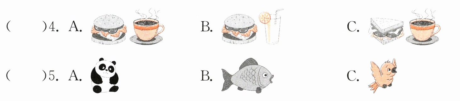 一、聽錄音,選出你所聽到的內(nèi)容或圖片,聽兩遍。(共5分,每小題1分)