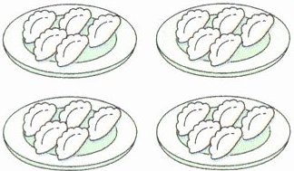 $4×5 = 20$ 解析: 從上往下數(shù),第五行有6個$?$,從第五行移2個到第一行,第五行變成4個,第一行也變成4個,同樣,從第四行移1個到第二行,都變成了4個,第三行原來就是4個,所以一共就有5個4,用乘法算式表示為$4×5$。