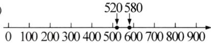 (1) 520 大約在什么位置? 580 呢? 在圖中標出來。(4 分)