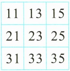 思路分析 先觀察圖中的數(shù),都是大于2的單數(shù),且每行相鄰的兩個(gè)數(shù)相差2。前一問(wèn)中,要看找出的兩個(gè)數(shù)的個(gè)位上的數(shù)字相加的和是不是等于6,十位上的數(shù)字相加的和是不是等于50,由此找到 $21 + 35 = 56$,$31 + 25 = 56$,$23 + 33 = 56$。后一問(wèn)中,因?yàn)閱螖?shù)加單數(shù),結(jié)果一定是雙數(shù),65是單數(shù),所以從表中找不出兩個(gè)數(shù)的和等于65。