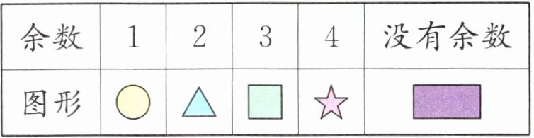 通過觀察可以發(fā)現(xiàn),這些圖形是以“$? \triangle □ \star \blacksquare$”這 5 個圖形為一組重復排列的。用圖形的數(shù)量除以每組圖形的數(shù)量,其中余數(shù)與圖形的對應關系如下表: