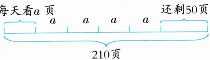 根據(jù)圖意可列方程:$4a + 50 = 210$