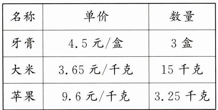 ②問題:王叔叔買牙膏和大米一共花了多少錢?