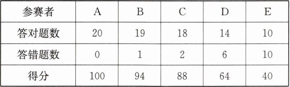 (2)設(shè)答對(duì)了$x$道題,則答錯(cuò)了$(20 - x)$道題。根據(jù)題意可得$5x - 1×(20 - x) = 82$,解得$x = 17$,答:答對(duì)了17道題。