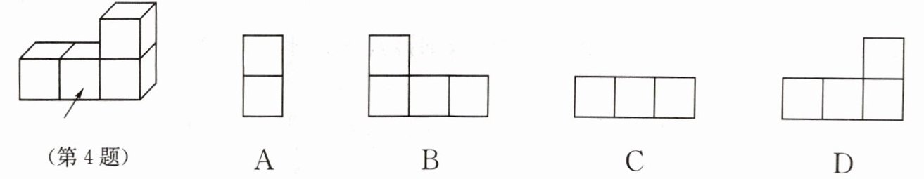 4. 四個相同的小正方體堆成的物體如圖所示,從正面看到的平面圖形是(