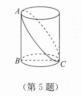 5. 如圖,$BC$是圓柱底面的直徑,$AB$是圓柱的高.在圓柱的側(cè)面上,過點$A$,$C$嵌有一圈路徑最短的金屬絲,現(xiàn)將圓柱側(cè)面沿$AB$剪開,所得的圓柱側(cè)面展開圖是(