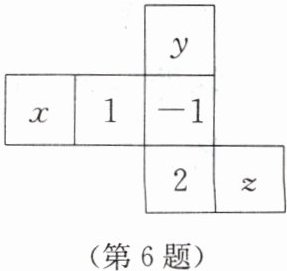6. 小華在一個正方體的六個面上分別寫上“$x$,$y$,$z$,1,$-1$,2”的字樣,表面展開圖如圖所示.若在該正方體中,相對面上的數(shù)字相等,則$x^y = $