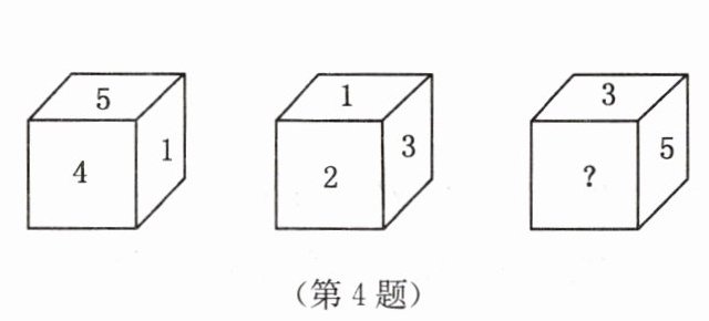 4. 一個正方體的每個面分別標(biāo)有1,2,3,4,5,6,從不同位置看到的圖形如圖所示,則“?”處的數(shù)字是(