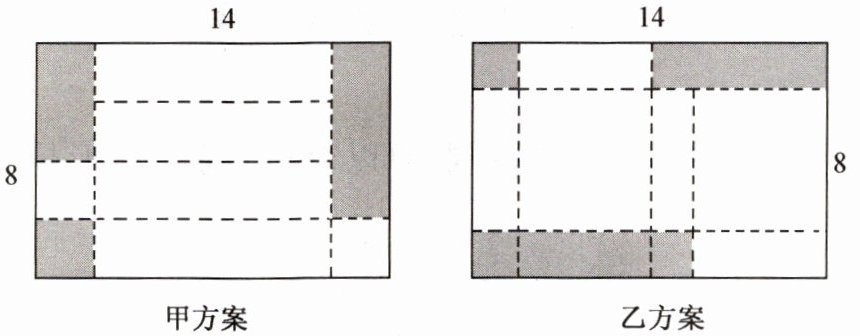相同規(guī)格(長為14,寬為8)的長方形硬紙板,剪掉陰影部分后,將剩余的部分沿虛線折疊,制作成底面為正方形的長方體箱子,有如圖所示的甲、乙兩種方案,所得長方體體積分別記為$V_{甲}和V_{乙}$.下列說法正確的是(