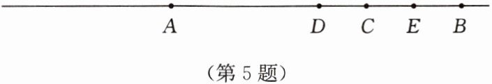 5. 如圖,$ A $,$ B $,$ C $,$ D $,$ E $ 五點(diǎn)在同一條直線上,點(diǎn) $ D $ 是線段 $ AB $ 的中點(diǎn),點(diǎn) $ E $ 是線段 $ BC $ 的中點(diǎn),若 $ AB = 12 $,$ DE = 4 $,求線段 $ BC $ 的長.