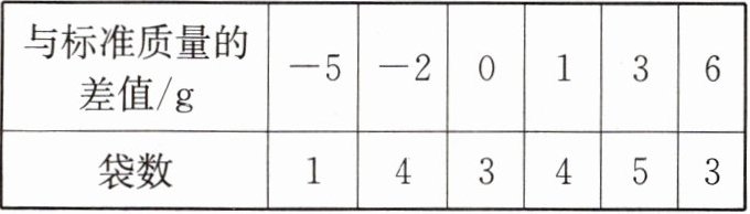 (1)若標準質(zhì)量為每袋 200g,則這批樣品的總質(zhì)量是多少?