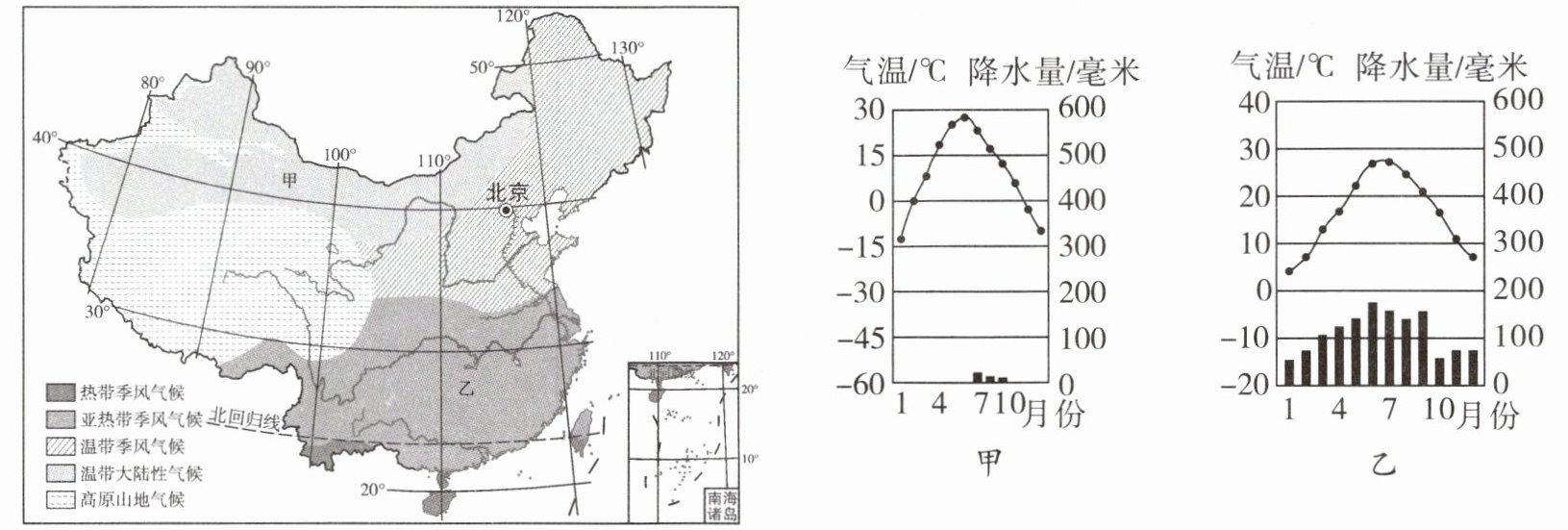(2)據(jù)圖1中A、B、C三種氣候類型的分布可知,我國氣候還具有