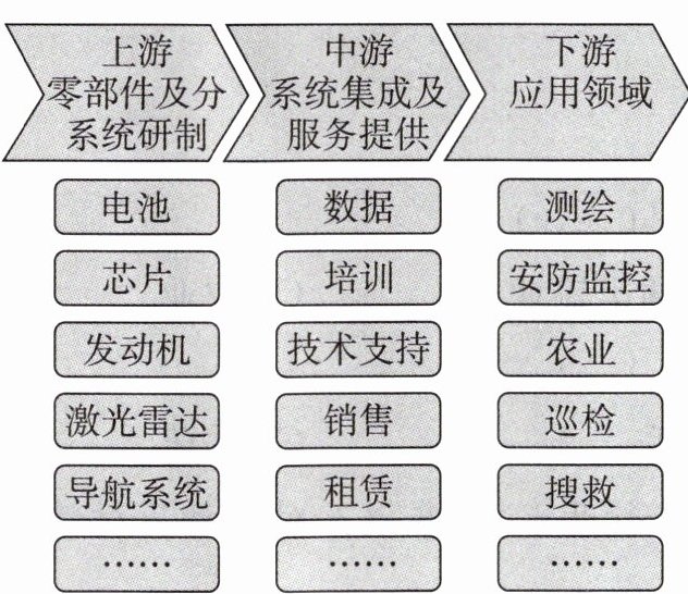 新質(zhì)生產(chǎn)力是由技術(shù)革命性突破、生產(chǎn)要素創(chuàng)造性配置、產(chǎn)業(yè)深度轉(zhuǎn)型升級(jí)而催生的當(dāng)代先進(jìn)生產(chǎn)力。中國(guó)生產(chǎn)的民用無(wú)人機(jī)用途非常廣泛。下圖為無(wú)人機(jī)產(chǎn)業(yè)鏈圖。據(jù)此完成6~8題。
