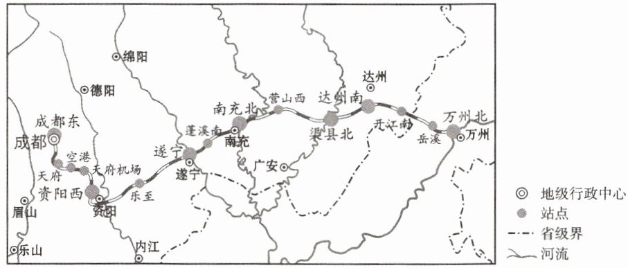 成達(dá)萬(wàn)(成都—達(dá)州—萬(wàn)州)高速鐵路,是全國(guó)“八縱八橫”高速鐵路網(wǎng)中“沿江通道”的重要組成部分、四川東向出川的重要快速便捷大通道,正線全長(zhǎng)477千米。成達(dá)萬(wàn)高鐵建設(shè)有序推進(jìn),全線133座隧道已貫通大半。據(jù)此完成4~5題。