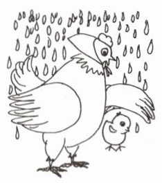 1. 從兒歌“嘩啦嘩啦嘩啦”“傘上噼噼啪啪”可知有趣的聲音是②④。2. 兒歌中“傘像母雞翅膀”,對應第四幅圖母雞翅膀下有小雞的畫面。